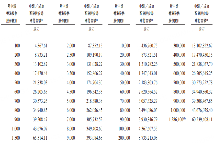 乙組門檻爲20萬股,申購所需資金約873.52萬港元。
