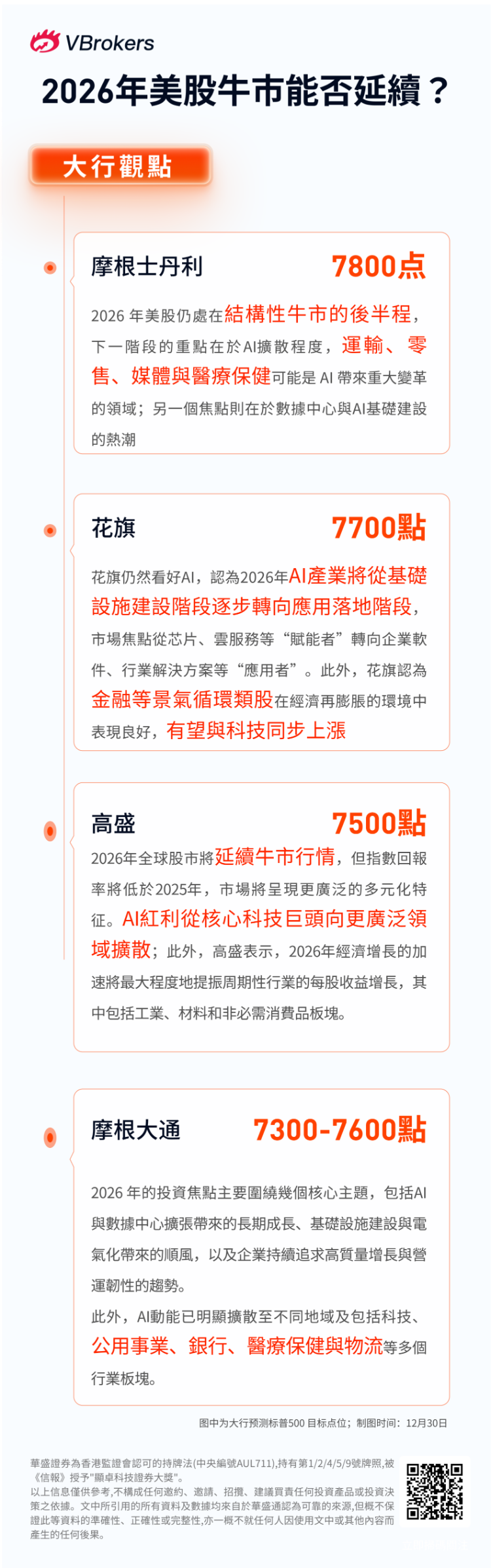 2026年美股展望:牛市能否繼續?多家大行樂觀看好