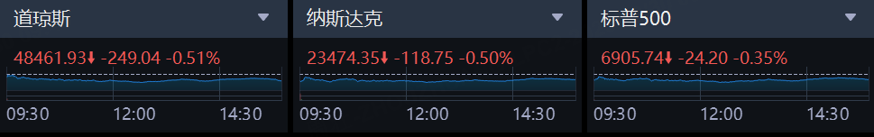 週一,美股三大指數集體收跌。截至收盤,標普500指數跌0.35%,報6905.74點;納斯達克綜合指數跌0.5%,報23474.35點;道瓊斯工業平均指數跌0.51%,報48461.93點。