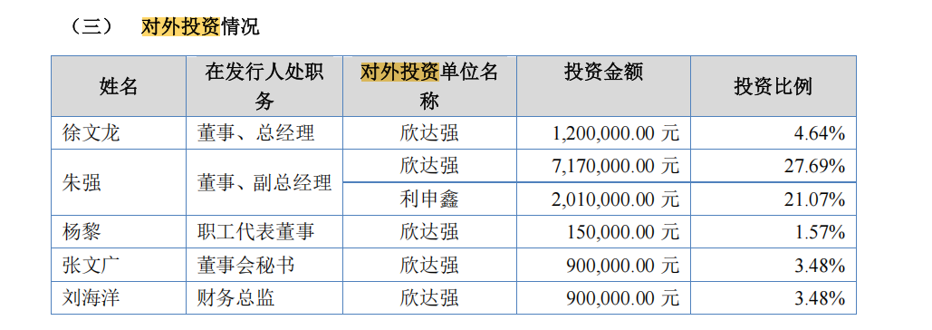 這兩個員工持股平臺的合夥人多爲濟人藥業核心員工及朱月信的親屬,尤其是欣達強的有限合夥人中,包括朱月信的子女、兄弟姐妹等多位親屬。其中,朱強擔任欣達強的普通合夥人,有限合夥人朱玉、朱琳琳、朱慧慧系朱月信與汪雪文之女,有限合夥人朱月健、朱月娥分別爲朱月信的胞弟和妹妹。此外,濟人藥業董事、總經理徐文龍、職工代表董事楊黎、董事會祕書張文廣、財務總監劉海洋等核心管理人員均爲欣達強的有限合夥人。