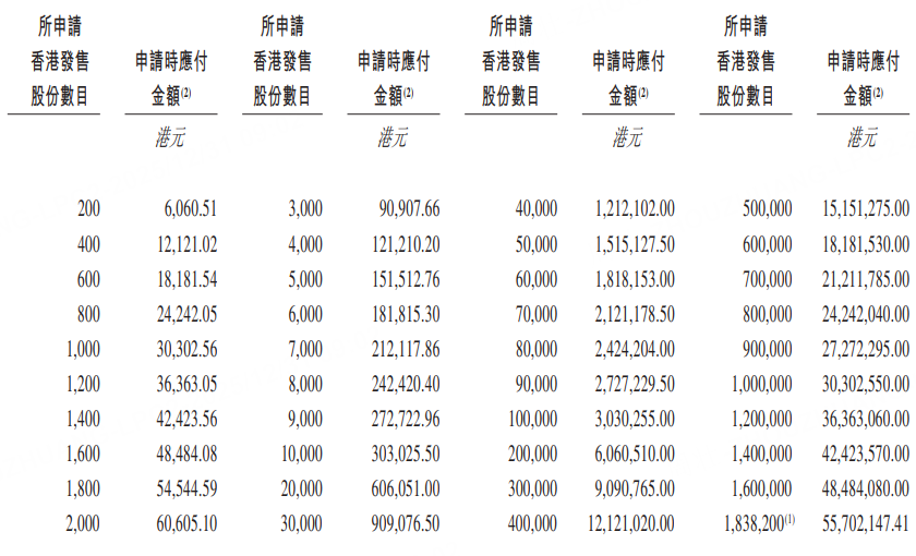 乙組門檻爲20萬股,申購所需資金約606.05萬港元。