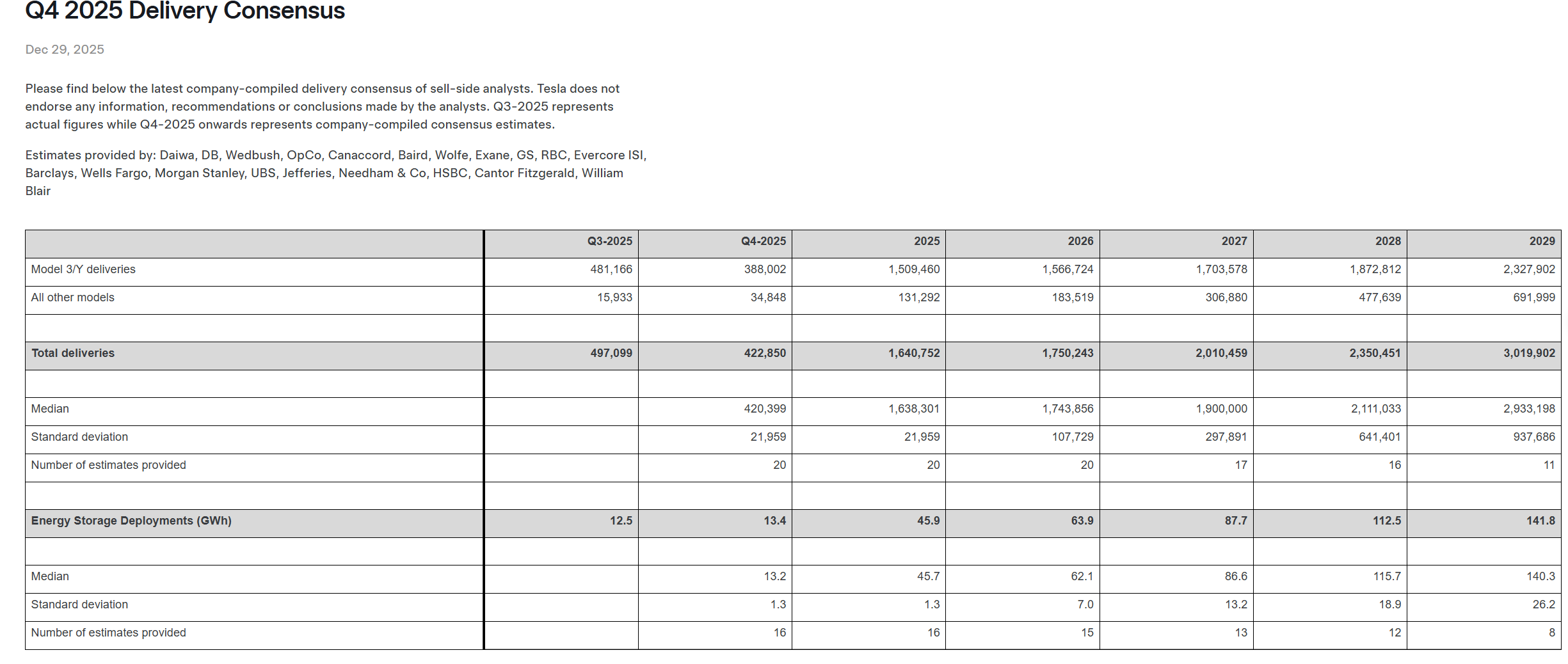 罕見操作!特斯拉公佈分析師預測:Q4交付量或下滑15%,稅收補貼退坡與競爭加劇衝擊需求