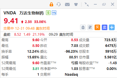 華盛資訊12月31日訊,萬達生物製藥大漲超33%,旗下暈動症藥物獲美國FDA批准。