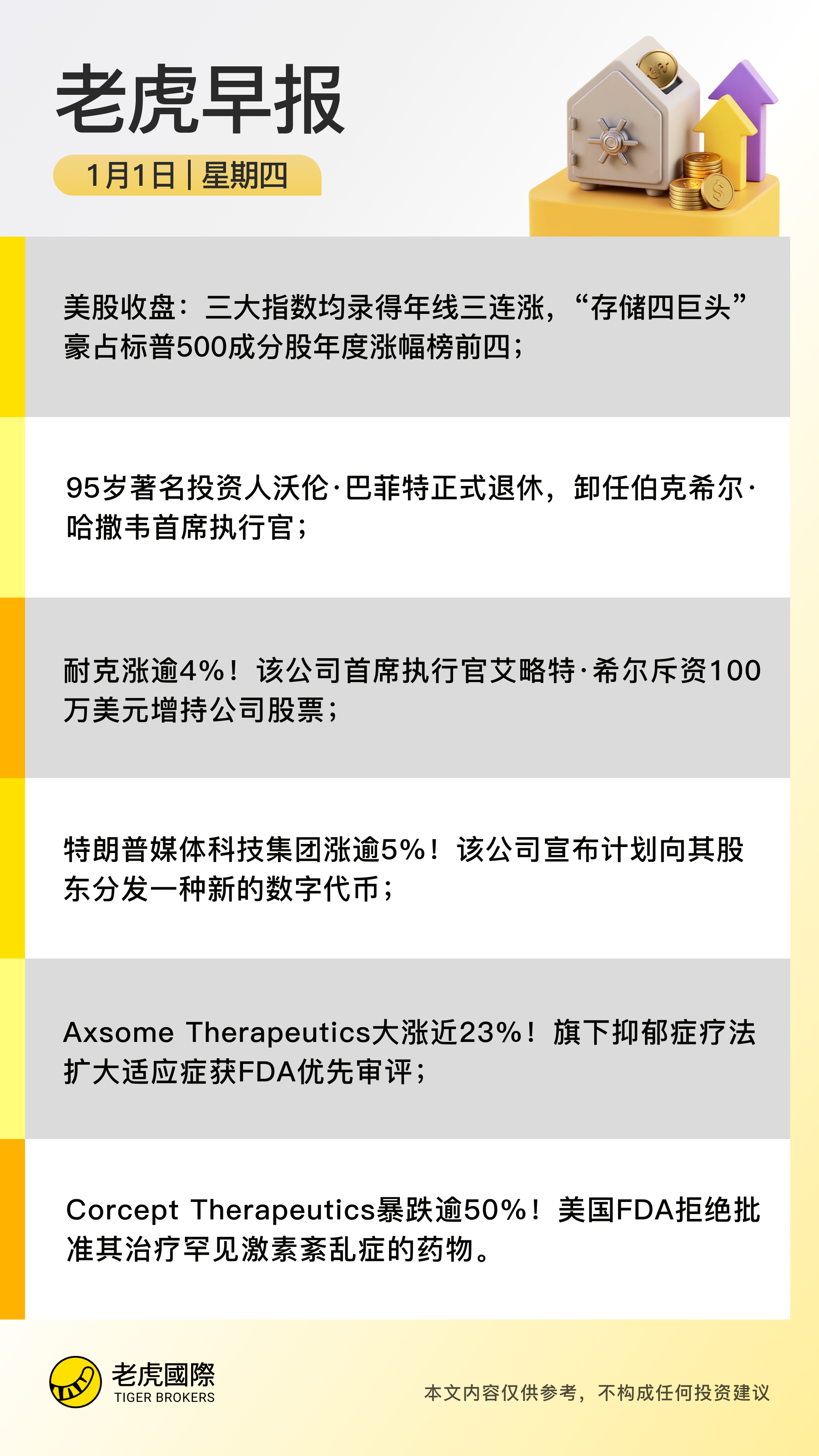 美股收盤:三大指數均錄得年線三連漲,“存儲四巨頭”豪佔標普500成分股年度漲幅榜前四