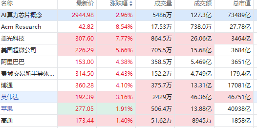 華盛資訊1月2日訊,美股AI芯片股集體走高,美光科技大漲近8%創新高,英特爾漲超6%,AMD漲超5%,博通、臺積電漲超4%,英偉達漲超3%,谷歌漲超2%。
