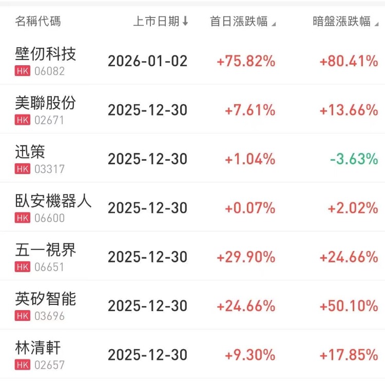 華盛資訊1月4日訊,本週6只港股新股上市集體收漲,其中港股“GPU第一股”壁仞科技暴漲76%,AI製藥公司英矽智能首日大漲24%。