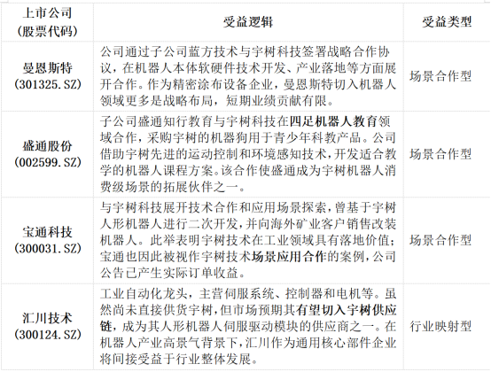 第三類公司並不一定與宇樹科技形成一對一綁定,但其產品或技術處於機器人產業的通用核心環節,宇樹科技上市及人形機器人熱度提升,將強化其行業估值邏輯。