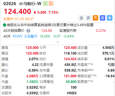華盛資訊1月5日訊,港股智能駕駛概念股盤初走高,小馬智行-W漲超7%,黑芝麻智能漲超5%,浙江世寶、文遠知行-W、禾賽-W均漲超3%。