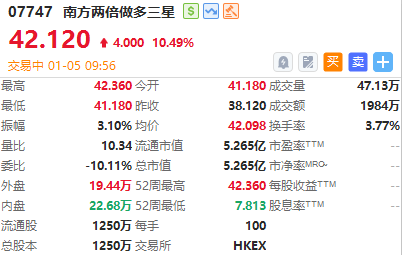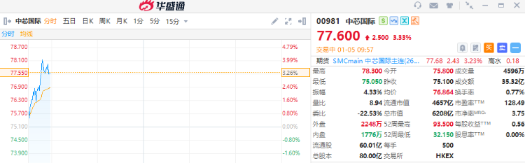 華盛資訊1月5日訊,港股存儲、半導體概念走高!南方兩倍做多三星漲超10%,南方兩倍做多海力士漲超4%,中芯國際漲超3%。