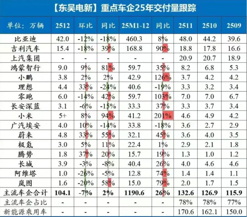 針對今日市場的疑慮,證星研究院認爲,當前板塊情緒或反映了對12月車市整體環比走弱、以及2026年競爭進一步加劇(疊加國補退坡與新能源購置稅政策變化)的擔憂。