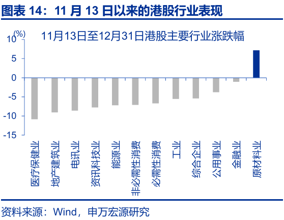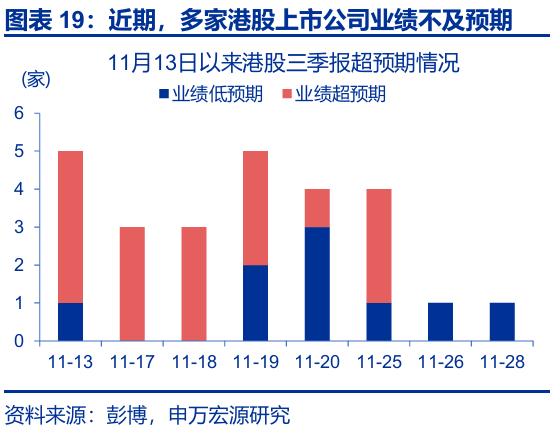 第二,港股12月交投平淡的季節性、海外投資者的獲利了結、部分港股上市公司三季報不及預期等也有拖累。1)本輪匯率升值更多由外因驅動而非基本面改善,且時值年終,部分海外投資者的獲利了結弱化了外資的“配置效應”。2)歷史回溯來看,2011年以來,恒生指數12月的平均換手率爲4.4次、爲全年各月份最低。3)11月13日以來,多家互聯網平臺企業、車企等三季報業績不及預期,對市場情緒也有一定影響,一定程度上強化了獲利了結交易的慣性。整體而言,四季度港股市場或以獲利了結交易爲主,市場整體交投清淡限制了港股對利好因素的即時反饋。