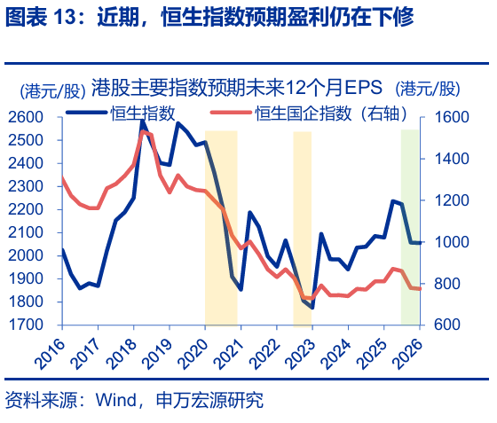 一方面,業績表現是決定港股能否受益匯率升值“重估效應”的關鍵;申萬策略此前發佈的《從彼岸,到此岸——2026年港股和海外中資股投資策略》中提到,2026年港股盈利有望出現邊際改善。