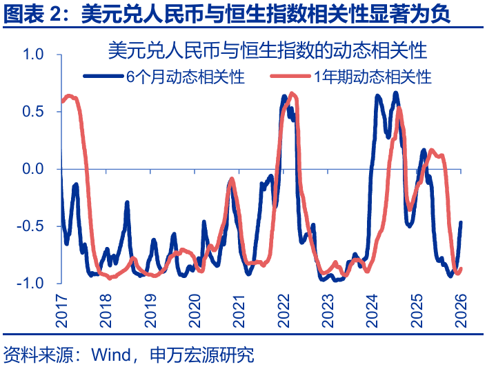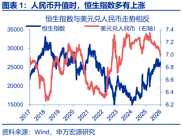 向後看,隨着匯率與港股關係的逐步修復,2026年,人民幣升值有望再度成爲港股上漲的助力之一。短期來看,年底獲利了結交易結束後,港股年初的一月效應往往較爲強勁。展望全年,隨着“待結匯”邏輯的演繹、名義GDP的修復、中美貿易摩擦的邊際降溫,人民幣的韌性有望延續。伴隨着匯率升值“重估效應”、“配置效應”的逐步修復,如果人民幣匯率與港股重回正相關關係,人民幣升值有望成爲宏觀層面港股上漲的又一助力。