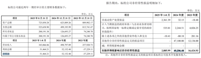 不僅如此,標的公司淨利潤表現並不穩定。2023年、2024年及2025年1-8月,華力微淨利潤分別爲-3.72億元、5.22億元、5.15億元,曾於2023年出現虧損。進一步研究發現,2024年,華力微非經常性損益金額爲4.93億元,主要系計入當期損益的政府補助和技術開發服務收入,佔當年淨利潤的比重達94.44%。