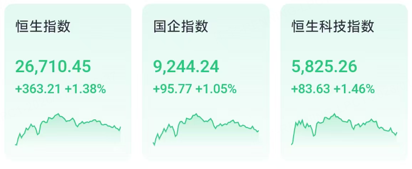 1月6日週二,受券商、智能駕駛、有色等概念帶動,港股三大指數集體收漲。恒生指數收報 26710.45 點,漲 1.38%;恒生科技指數收報 5825.26 點,漲 1.46%;國企指數收報 9244.24 點,漲 1.05%。市場風險偏好回升,盤中資源與券商板塊表現活躍。