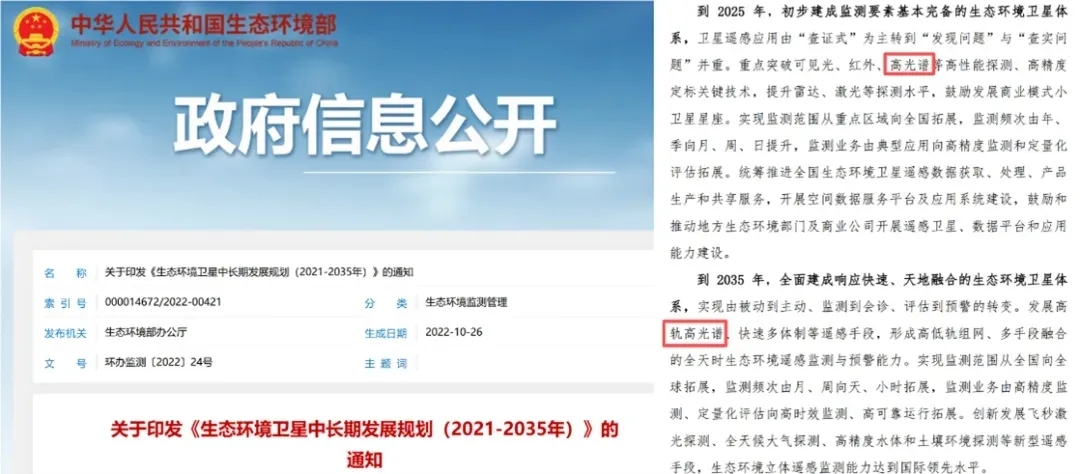 國家戰略也早早佈局,《生態環境衛星中長期發展規劃(2021–2035年)》明確將高光譜列爲環境監測的核心載荷。截至2025年5月,我國已發射20多顆高光譜衛星,初步構建起空天地一體化觀測網絡:天上依託高分五號等主力星,空中由無人機靈活補位,地面則通過光譜儀進行校準驗證。