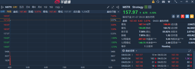 Strategy盤前大漲近6%;消息面上,MSCI表示不會剔除數字資產財庫公司。