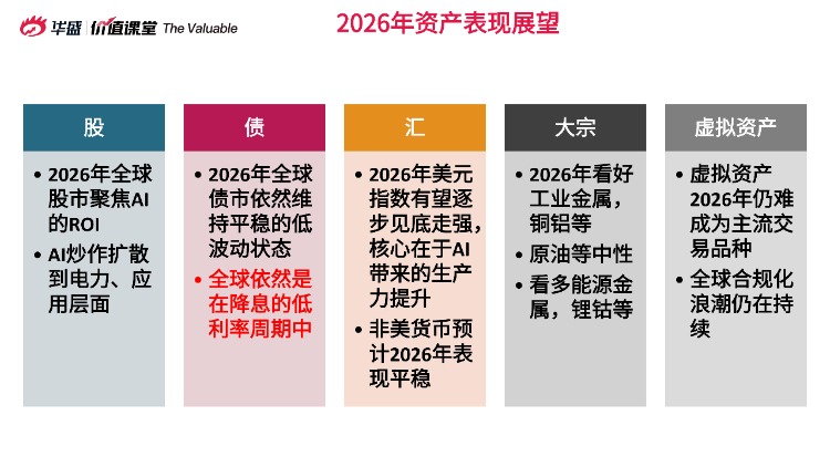 言財老師首先從股、債、匯、大宗、虛擬資產等5大類資產進行了展望,核心觀點如下:
