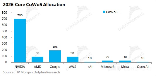 結合當前市場預期的 2026 年 CoWoS 的總量來看,海豚君預估 2026 年 AI 服務器對傳統 DDR 的需求將達到 91.9 億 GB(9.2EB),同比增長 250%,比市場原有預期提升了 1EB 左右。