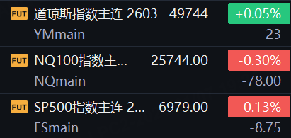 1月7日,美股三大股指期貨漲跌不一,截止發稿,道指期貨漲0.05%,納指期貨跌0.3%,標普500指數期貨跌0.13%。