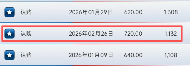 騰訊控股 上午跌1.68%,連續兩日走低,消息面上並沒有特別的利空。期權方面,一張2月26日到期的認購合約,行權價高達720港元。