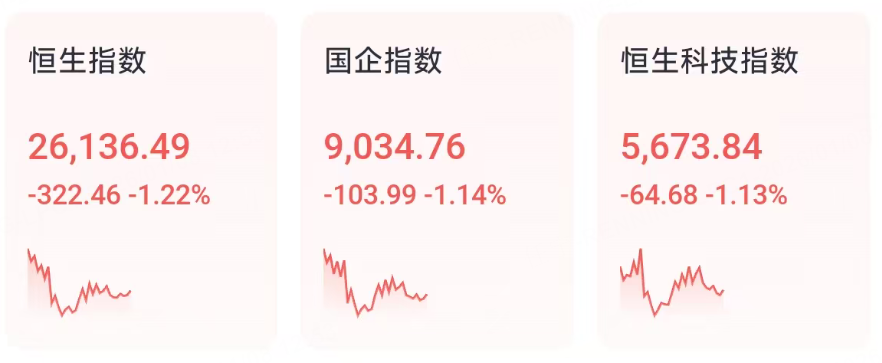 1月8日週四,港股三大指數上午集體走低,午間跌幅均超1%。大型科技股、大金融股集體低迷,蘋果概念股、濠賭股、汽車股、家電股紛紛走低。