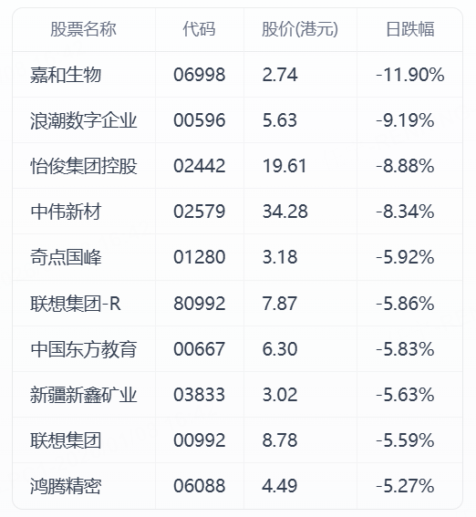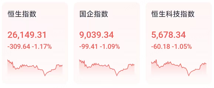 1月8日週四,港股全天走弱,截至收盤,恒生指數報26149.31,跌1.17%;國企指數報9039.34,跌1.09%;恒生科技指數報5678.34,跌1.05%。部分新經濟與醫藥股逆勢活躍,市場風格呈現“權重承壓、主題輪動”的格局。