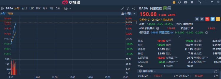 阿里巴巴展開反彈,現漲近3%;此前公司宣佈堅定加大投入淘寶閃購,以達到市場絕對第一。