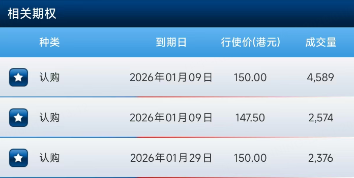 期權方面,阿里巴巴上午成交前三位的都是認購合約,其中兩份的行權價都在150港元。作爲中國科技資產的龍頭標的,阿里巴巴的動向值得持續關注。