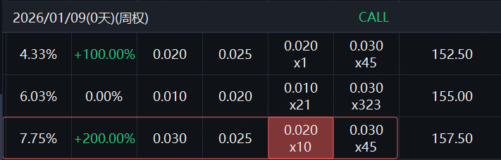 阿里巴巴一張行權價157.5港元的CALL,價格漲幅達200%。