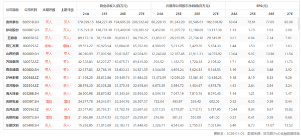 1、白酒:2025年充分釋放風險,2026年有望迎“供給先行、需求漸進“雙改善,當下動銷、價盤、報表三重底部,短期元春動銷環比改善正向催化,中期維度動銷、價盤、報表有望相繼修復,配置短期基於供給角度,中期基於格局與分紅,建議配置:1)供給出清或邊際改善:瀘州老窖、古井貢酒、迎駕貢酒、洋河股份、金徽酒等;2)中長期龍頭:貴州茅臺、五糧液、山西汾酒、今世緣等;2、大衆品:大衆消費企穩、高端可選抬頭,渠道變革與產品創新持續驅動,配置優選兩條復甦與成長雙主線:1)復甦主線大餐飲鏈、乳製品等β弱修復可期:伊利股份、安井食品、新乳業、燕京啤酒、青島啤酒、巴比食品、立高食品、寶立食品等;2)成長主線佈局零食、飲料及α個股:東鵬飲料、農夫山泉、西麥食品、鹽津鋪子、萬辰集團、有友食品、安琪酵母、H&H國際控股。