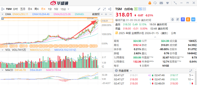 作爲全球最大的芯片代工製造商,在全球AI熱潮下,幾乎壟斷的行業地位獲得投資者持續追捧。公司股價2025年再漲56%,過去三年累計漲幅超過兩倍;而2026年開年至今,該股漲幅已達5%。