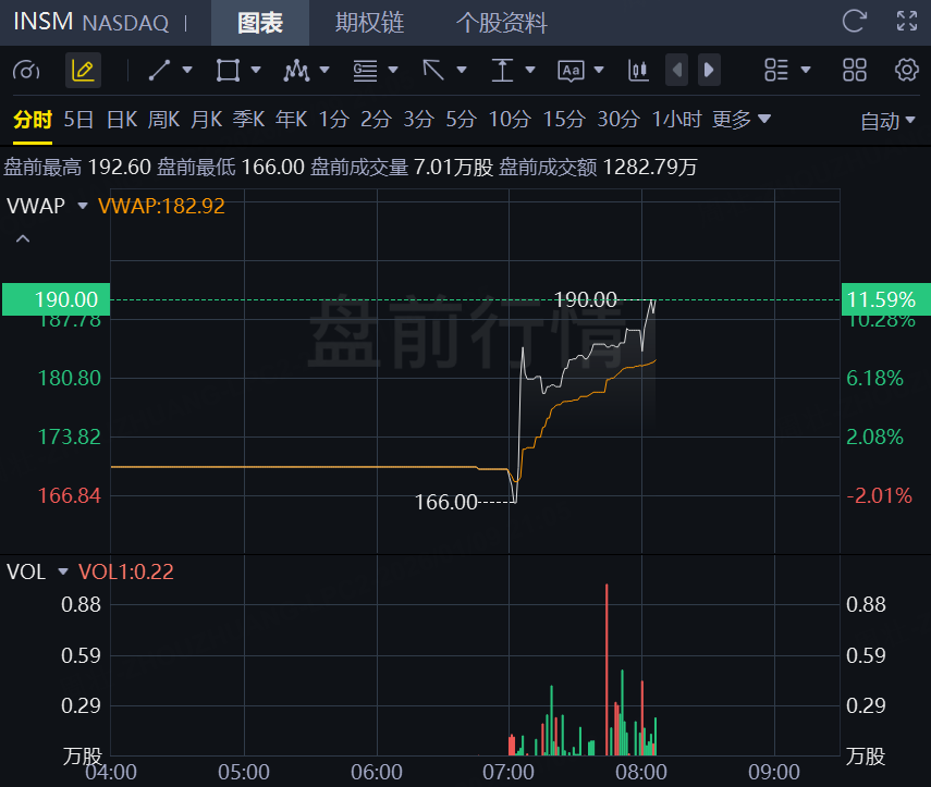 1月9日,生物製藥公司Insmed盤前漲超11%,此前該公司宣佈了2025年強勁的初步收入結果,其中BRINSUPRI成功上市和ARIKAYCE銷售超出預期成爲亮點。
