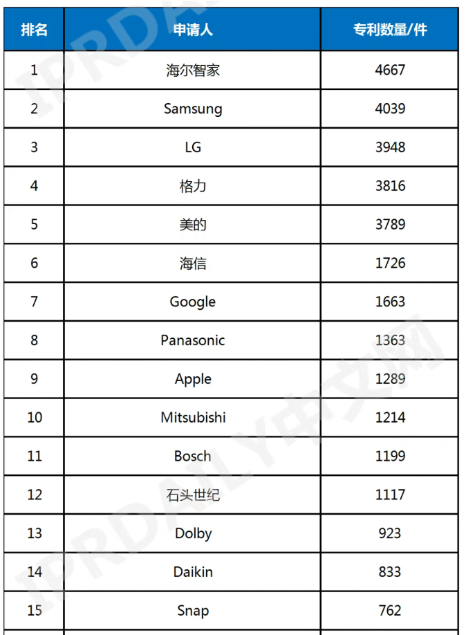據IPRdaily榜單顯示,當前的智能家電市場格局已初步穩定,形成了傳統家電企業、互聯網企業、科技企業三大陣營並驅爭先的局面。