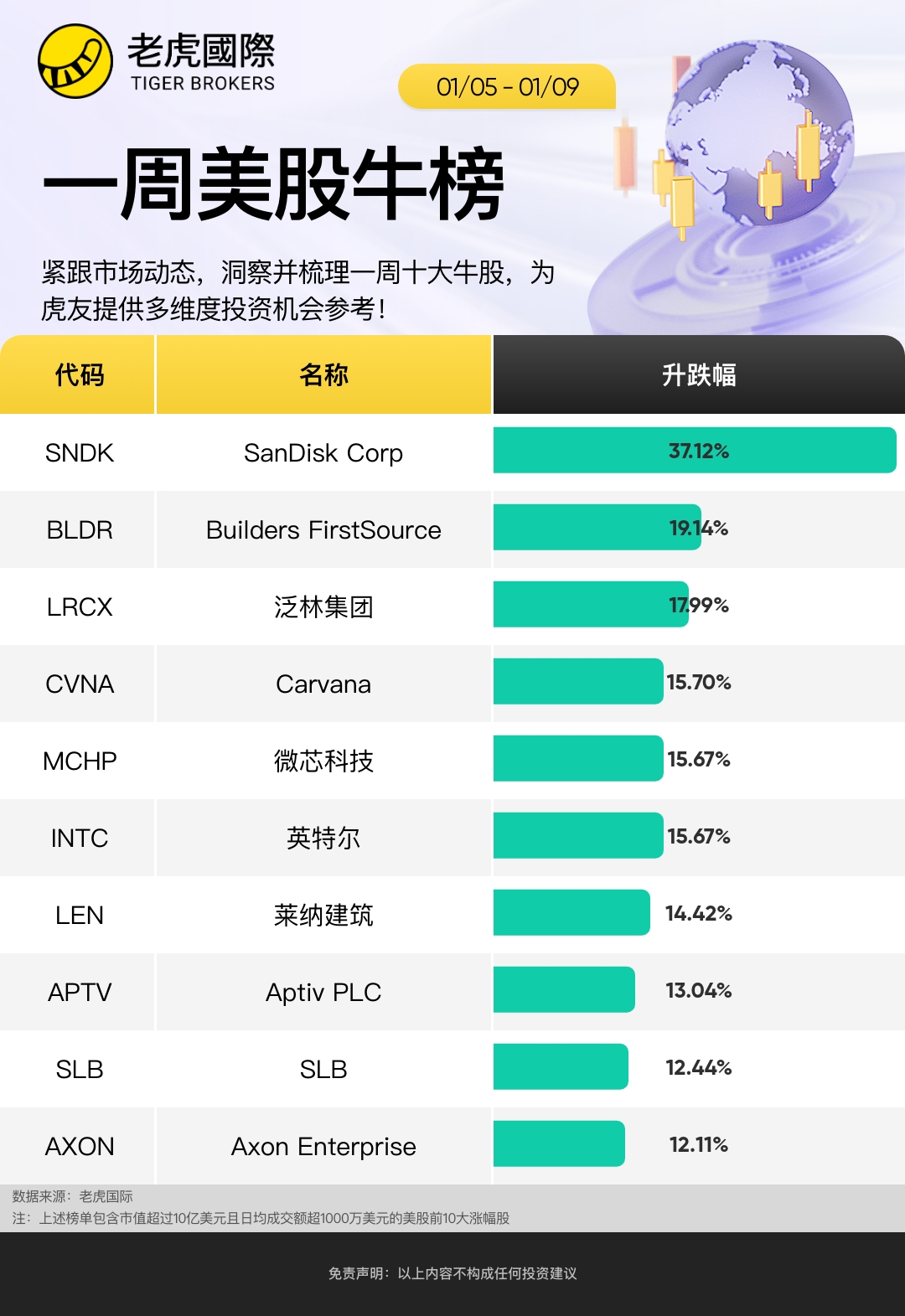 緊跟市場節奏,洞察一週美股強勢股表現,《一週美股牛榜》聚焦當週漲幅居前的核心個股,梳理背後驅動因素與行業主線,爲投資者提供多維度參考。