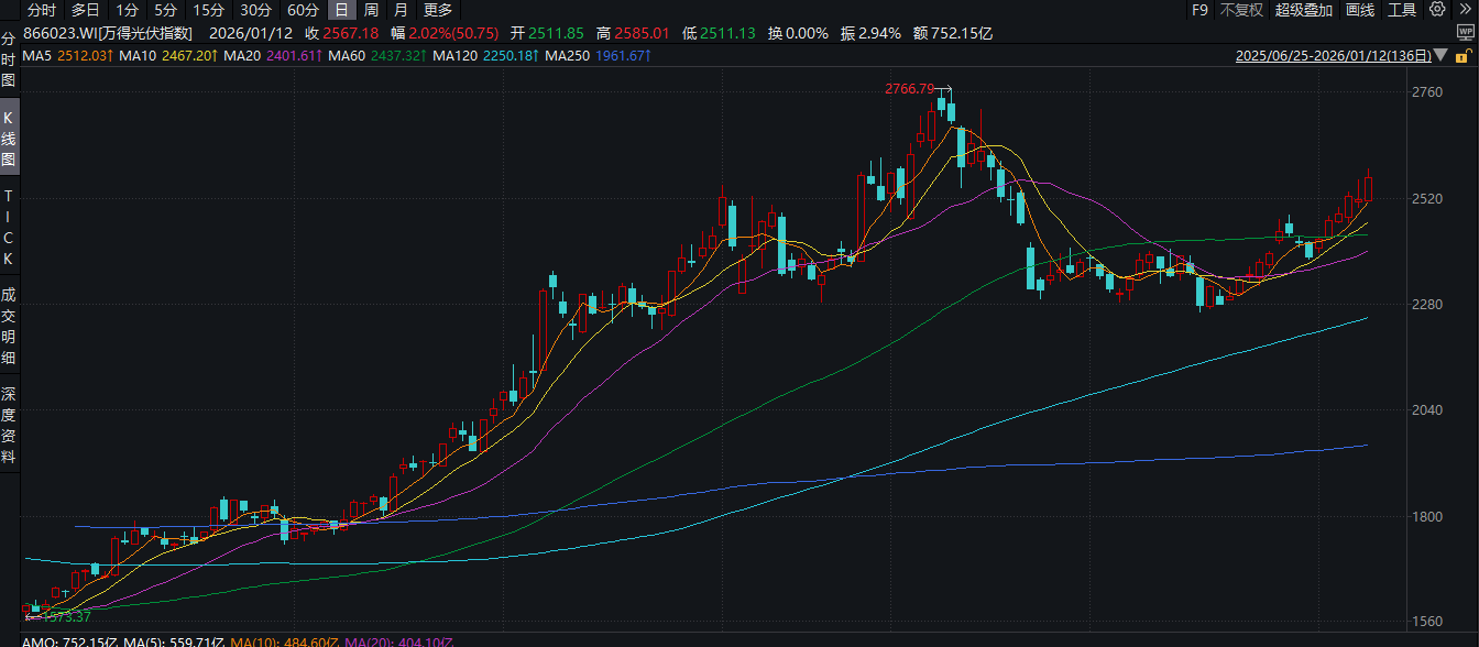 市場對政策調整已作出積極反應。自2026年以來,萬得光伏指數已錄得6連陽;1月12日,港股光伏板塊亦迎來普漲行情,截至當日收盤,協鑫新能源(00451)漲24.64%,北京能源國際(00686)漲6.19%,彩虹新能源(00438)漲4.8%,協鑫科技(03800)漲3.81%,福萊特玻璃(06865)漲3.31%,信義玻璃(00868)漲2.12%,新特能源(01799)漲1.76%。