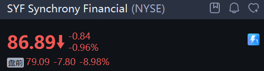 特朗普呼籲將信用卡利率上限設定爲10%,美國信用卡發行商的股價盤前下跌。 美國運通跌近4%, $Synchrony Financial(SYF-B)$ 跌9%,萬事達跌近2%,Visa跌1.6%。