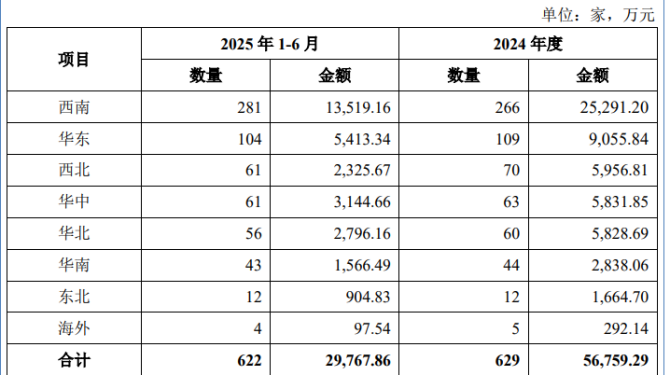 證券之星注意到,公司主要藉助經銷渠道擴大終端市場覆蓋面,期內來自經銷渠道收入佔比主業收入比重超九成。進一步看,以川渝爲核心的西南地區是公司的營收基石,2024年的銷售額達2.53億元,佔全年總銷售額的40.48%,對應的經銷商數量高達266家,至2025年上半年,來自西南地區的收入爲1.35億元,經銷商數量攀升至281家。可以看出,西南地區的收入穩健,但增長並非爆發式,公司需向外尋求增量。