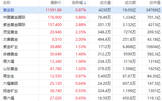 華盛資訊1月13日訊,港股黃金股盤初集體衝高,中國黃金國際大漲近6%,靈寶黃金、紫金黃金國際漲超2%,紫金礦業、赤峯黃金、山東黃金漲超1%。消息面上,美聯儲風波引爆避險交易,黃金白銀雙雙狂飆刷新高