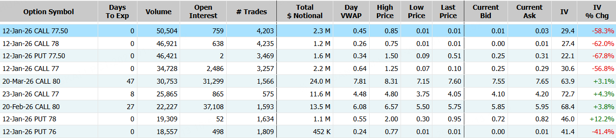 隔夜,白銀ETF-iShares漲近7%,期權合約成交212.36萬張,較90日均量放大2.2倍。當日到期的77.50美元的行權看漲期權交易量特別高,共有50,504份合約交易。