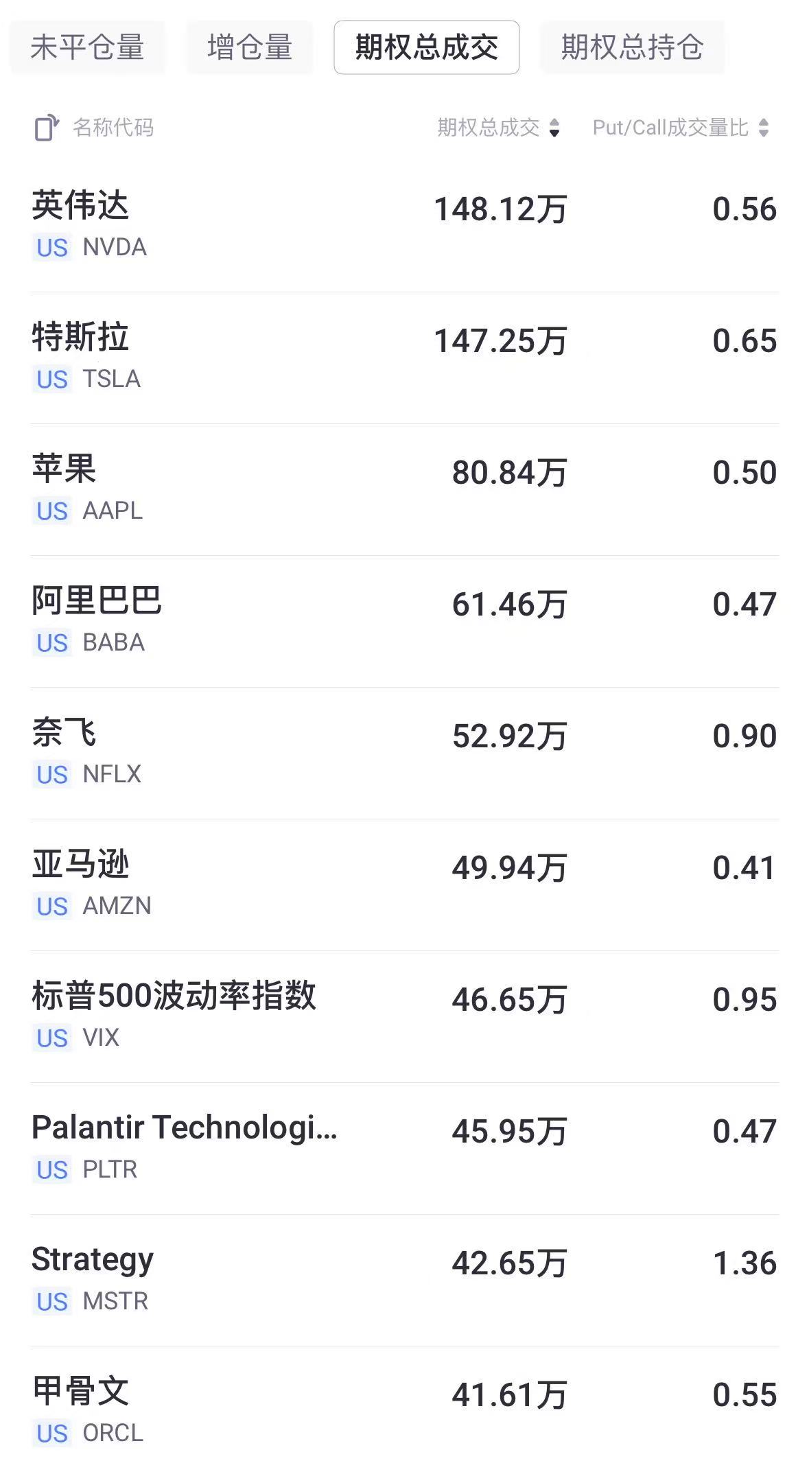 二、期權成交總量TOP10