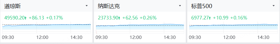 週一(1月12日),美股三大指數小幅收漲。截至收盤,道指漲0.17%,納指漲0.26%,標普500指數漲0.16%。