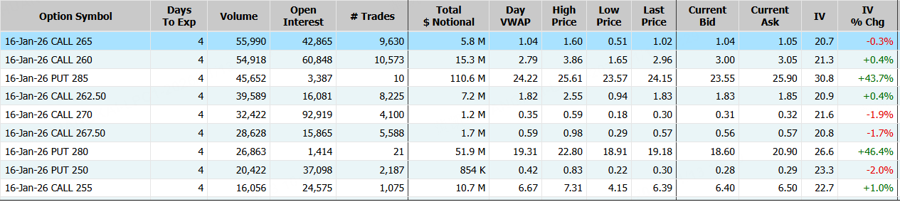 隔夜,蘋果小幅上漲,期權合約成交80.84萬張,1月16日到期的265美元的行權看漲期權交易量特別高,共有55,990份合約交易。 $AAPL 20260116 265.0 CALL$