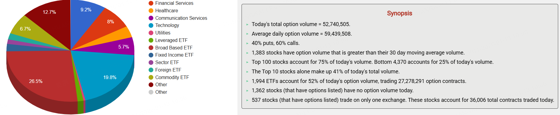 期權市場總成交量52,740,505張合約,其中看漲期權佔比60%。