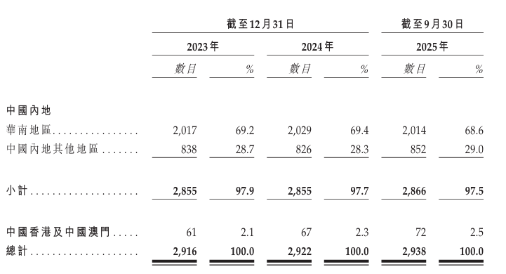加盟模式的弊端與“折扣日清”模式的內在矛盾,進一步加劇了錢大媽的發展困境。加盟這種輕資產擴張模式雖快速擴大了規模,但也帶來了管理難題。此外,公司此前揮師北上的嘗試已以失敗告終,北京地區全部門店關閉,暴露了其模式的地域適應性侷限。目前,公司門店絕大多數仍聚焦於華南地區,佔比近7成。