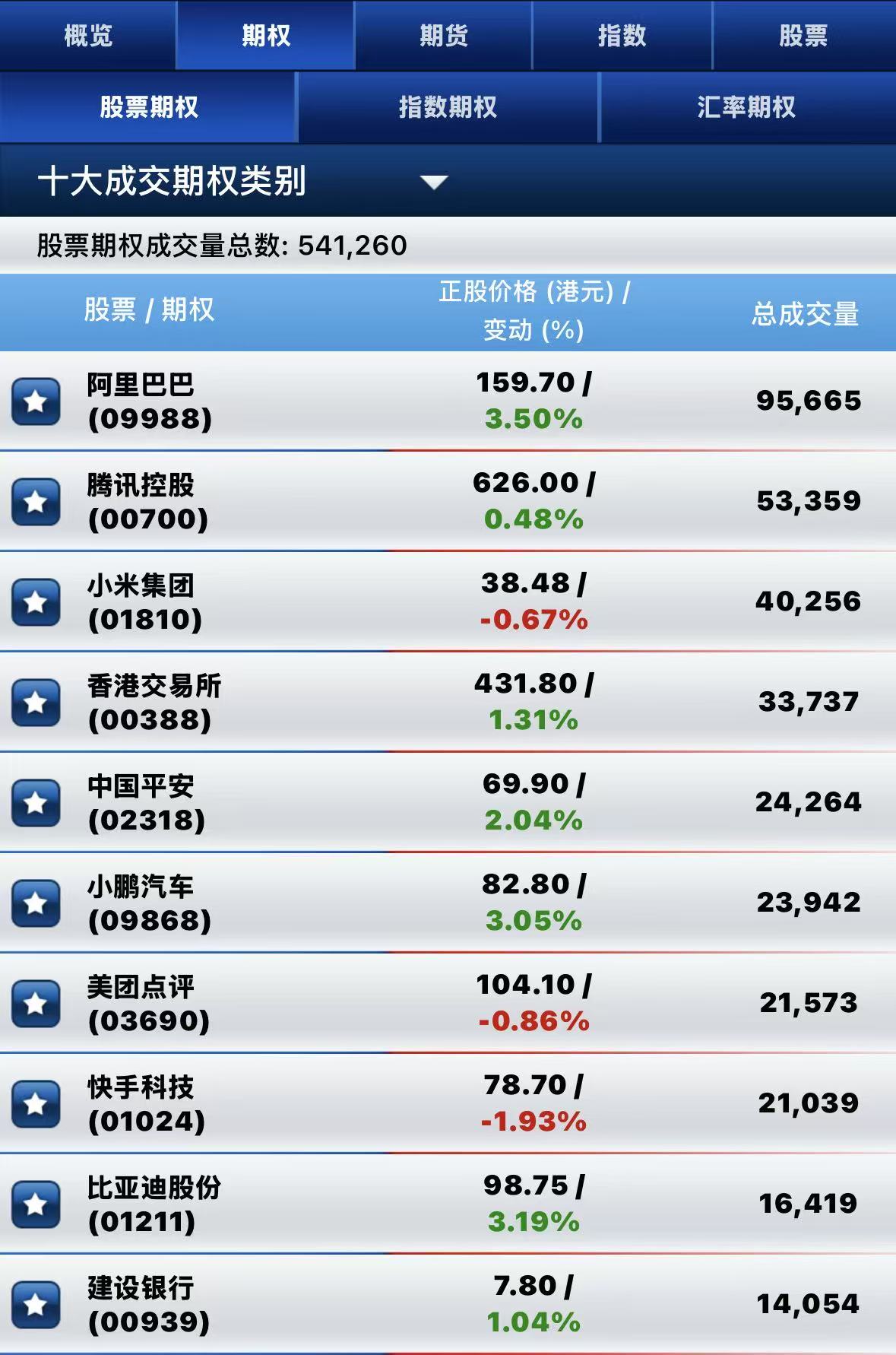 港股期權半日成交超54萬張。其中,阿里巴巴-W成交量居前,期權成交超9.5萬張;騰訊控股名列次席,期權成交超5.3萬張; 小米集團-W位居第三,期權成交超4萬張。