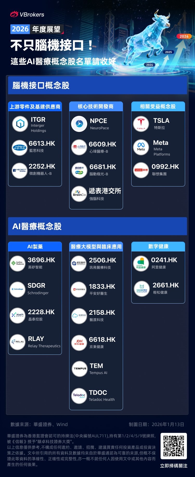 華源證券表示,AI大科技浪潮下,醫藥有望釋放新的成長邏輯,腦機接口、腫瘤早篩、AI醫療等快速發展。展望2026年,繼續看好以創新爲主的醫藥科技主線,重點關注腦機接口、AI醫療等。