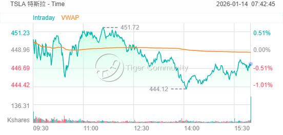 這家電動車製造商的股價下跌0.4%,至447.20美元;同期標普500指數下跌0.2%,道瓊斯工業平均指數下跌0.8%。