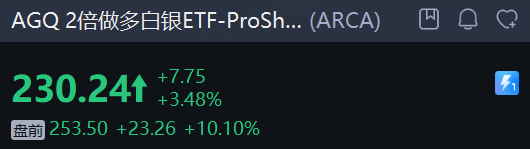 現貨黃金漲超1%,現貨白銀日內一度大漲超5%,突破91美元/盎司,概念股盤前普漲。2倍做多白銀ETF-ProShares 大漲超10%, 白銀ETF-iShares 漲超5%,科爾黛倫礦業漲超3%,金田、泛美白銀、First Majestic Silver Corporation 、Endeavour Silver 漲超2%。