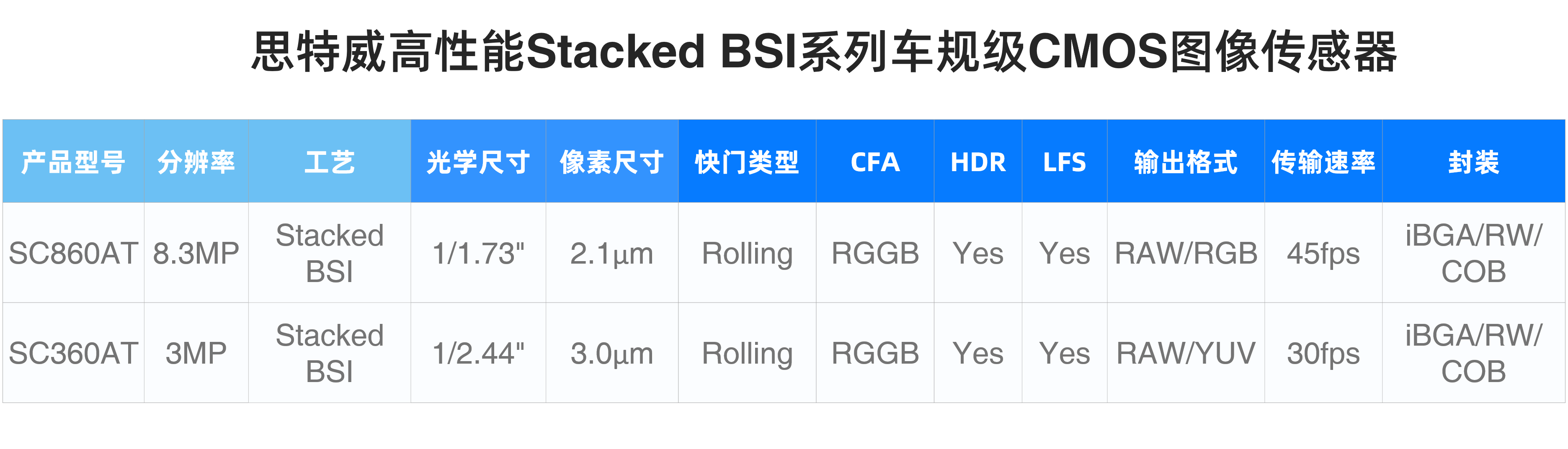 此外,SC860AT還支持RW與COB封裝版本,能夠爲客戶提供多樣、靈活的產品配置選擇,助力車載前視、側視、後視及艙內OMS攝像頭應用設計的加速升級。